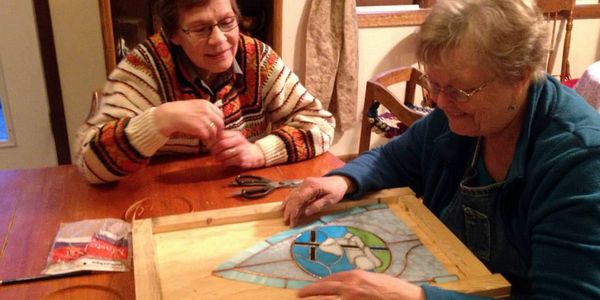 Joyce has been a stained glass artist for many years, having been commissioned to create and install a series of windows for a roadside chapel. She also created hundreds of dove Christmas ornaments for Lutheran Social Services. She designed and created the stained glass windows in the chapel at the farm and has made countless gifts.