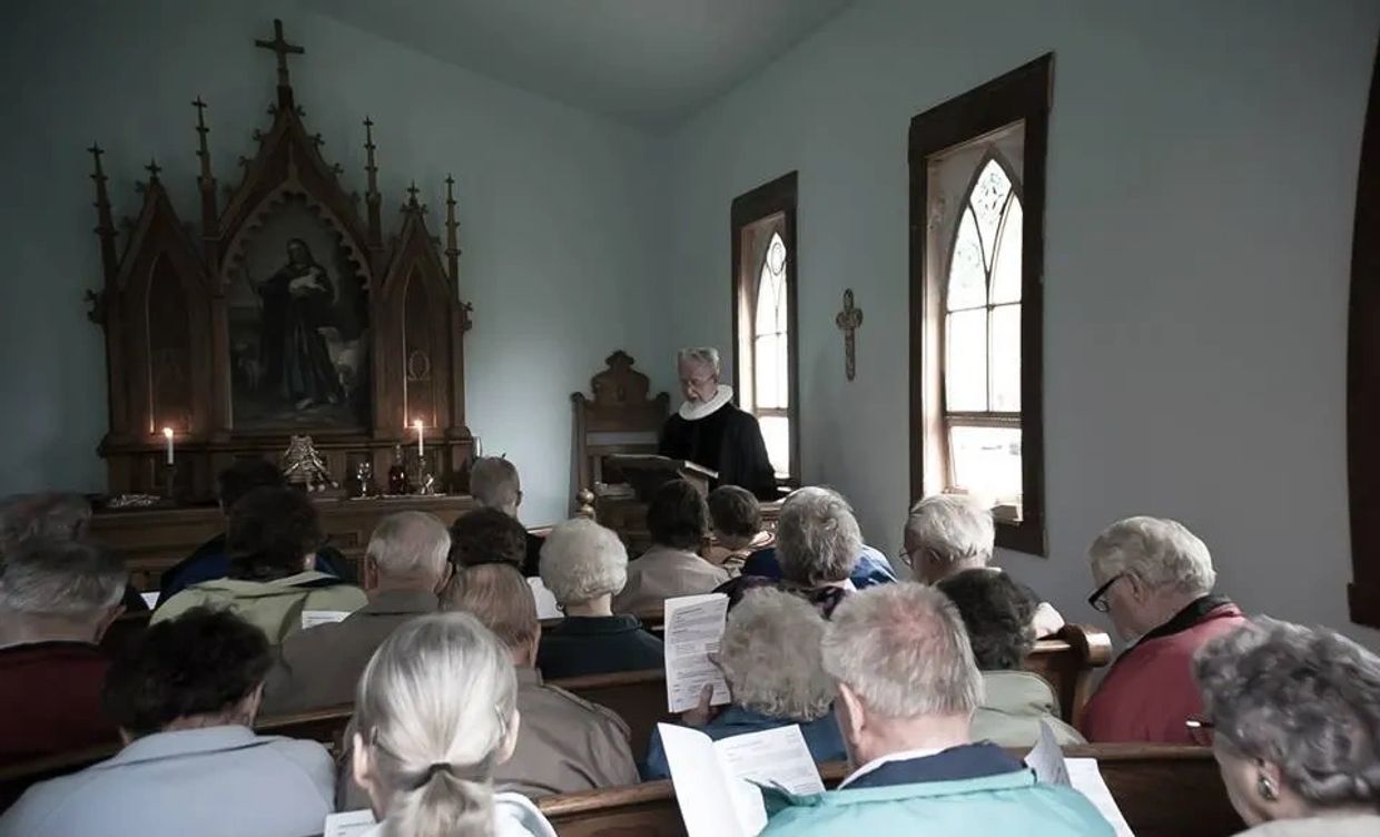 From the back door, a snapshot reveals a scene bathed in the warm glow of a July morning. Sunlight filters through stained glass windows, casting colorful patterns on the wooden pews. At the front, Joyce stands behind the pulpit, delivering a sermon that resonates with the congregation's hearts. In this tranquil moment the small church becomes a sanctuary of peace and solace.